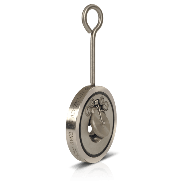 Ayvaz ÇV-20/21/25/26 双板止回阀设计用于在最小流量限制下运行。双弹簧半盘在管道中的工作方式;带有橡胶坐垫的圆盘提供正向关闭,防止任何回流,并防止形成灵活的坐声。